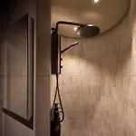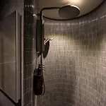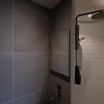 חדר האמבטיה ממולא במקלחת בעמידה ושירותים נפרדים.